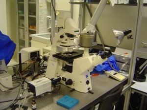 Description: The Zeiss Axiovert widefield microscope is equiped with insturments for frequency-domain FLIM or spectral imaging. The setup can be extended with a spinning disk device for confocal measurements. Mercury lamp filters: 365 nm